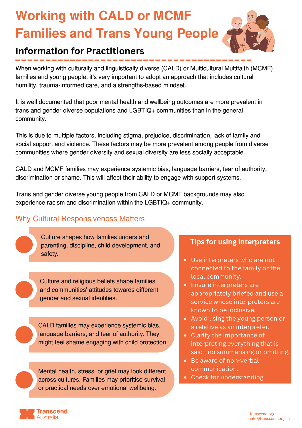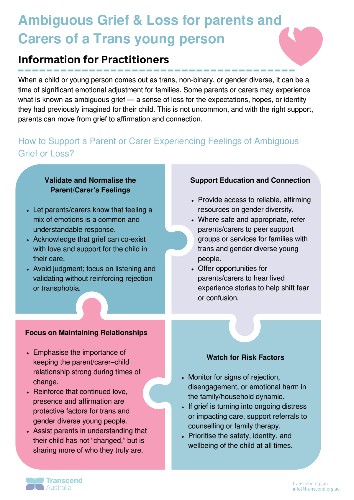 Transcend Australia’s medical resources page warmly guides trans, gender-diverse, and non-binary youth and their families in finding supportive, affirming healthcare options. It provides access to trusted resources on gender-affirming care, mental health, and general well-being, aiming to make each step accessible and reassuring. For those exploring medical transitions or looking for general support, the page lists clinics and healthcare providers across Australia, along with links to informative guides and services. It’s a valuable tool for families, friends, and allies looking to understand and support loved ones on their journey.